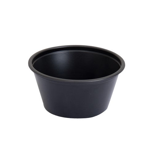 Visit Round Eye Supply for a huge selection of condiment cups for restaurants. These cups come in many sizes depending on their use. A small 0.5-ounce or 1-ounce souffle cup is ideal for single-serve dipping and dunking. Larger 4-ounce cups with lids can hold snack-size portions of fruit, nuts and crackers. Choose tall, narrow cups for French fries or squat cups for chips and chicken nuggets. We offer both paper and plastic condiment cups. A case of paper portion cups is a real money saver. The retro cups are exactly what you remember from fast food joints as a kid ó and they can be commercially composted. Black plastic sauce cups are more durable and less messy. If youíre prepackaging condiments for takeout, translucent dip cups let customers see the contents so they know itís what they ordered. Add portion cup lids to seal the contents to prevent spills.