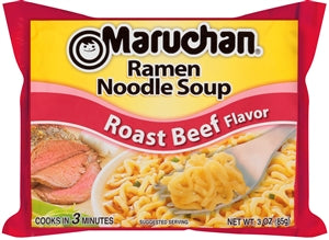 Whether you prefer a spicy ramen or the more popular standby flavors of Maruchan noodles like chicken or beef, you'll find the 3-ounce packets of all their flavors available here as wholesale ramen in cases of 24 packets each. Eighteen ounce portions are sold four each per case. Beef flavor is also available in reduced sodium.