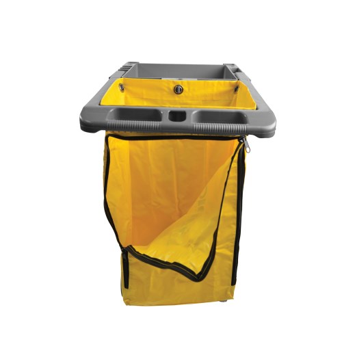 Janico janitorial cart you are assured you will have the job done right in the first place. The cart features 3 shelves, a larger bottom shelve for mop bucket with wringer or garbage can and a yellow vinyl bag which has capacity of 25 gl. As you can see the design of our janitorial cart is practical and economical.