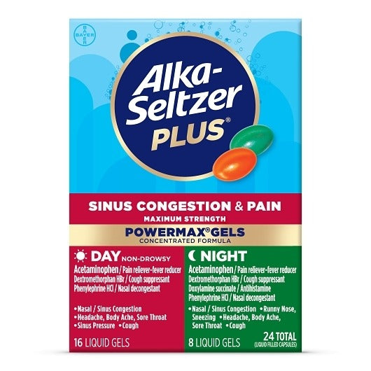 Alka-Seltzer Plus Max Sinus Congestion Pain D/N-24 Piece-3/Pack-8/Case