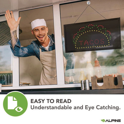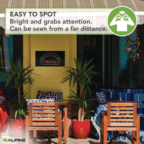 Alpine Industries Led Rectangular Taco Sign 19x10 Black Frame Green/red/yellow Graphics