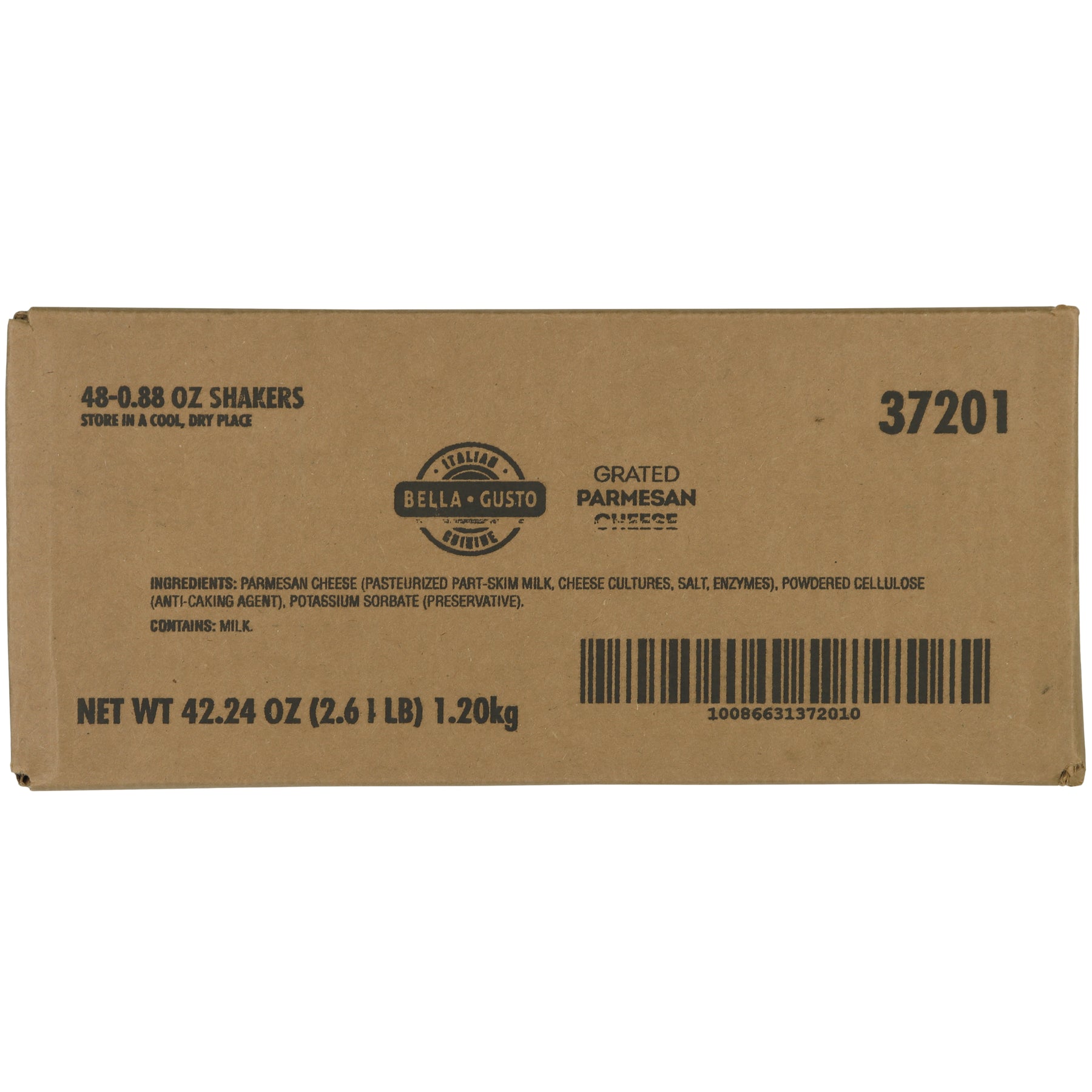 Bella Gusto Grated Parmesan Cheese Shakers provides a sharp distinctive flavor and aroma that consumers are looking to add to their favorite dishes. 100% freshly Grated Parmesan Cheese has a long shelf-life, due to a low moisture content, making it both a consumer and chef favorite.