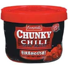 - Campbell's ChunkyTM Chili: One (1) 15.25 oz microwavable bowl of Campbell's ChunkyTM Hot & Spicy Chili with Beans