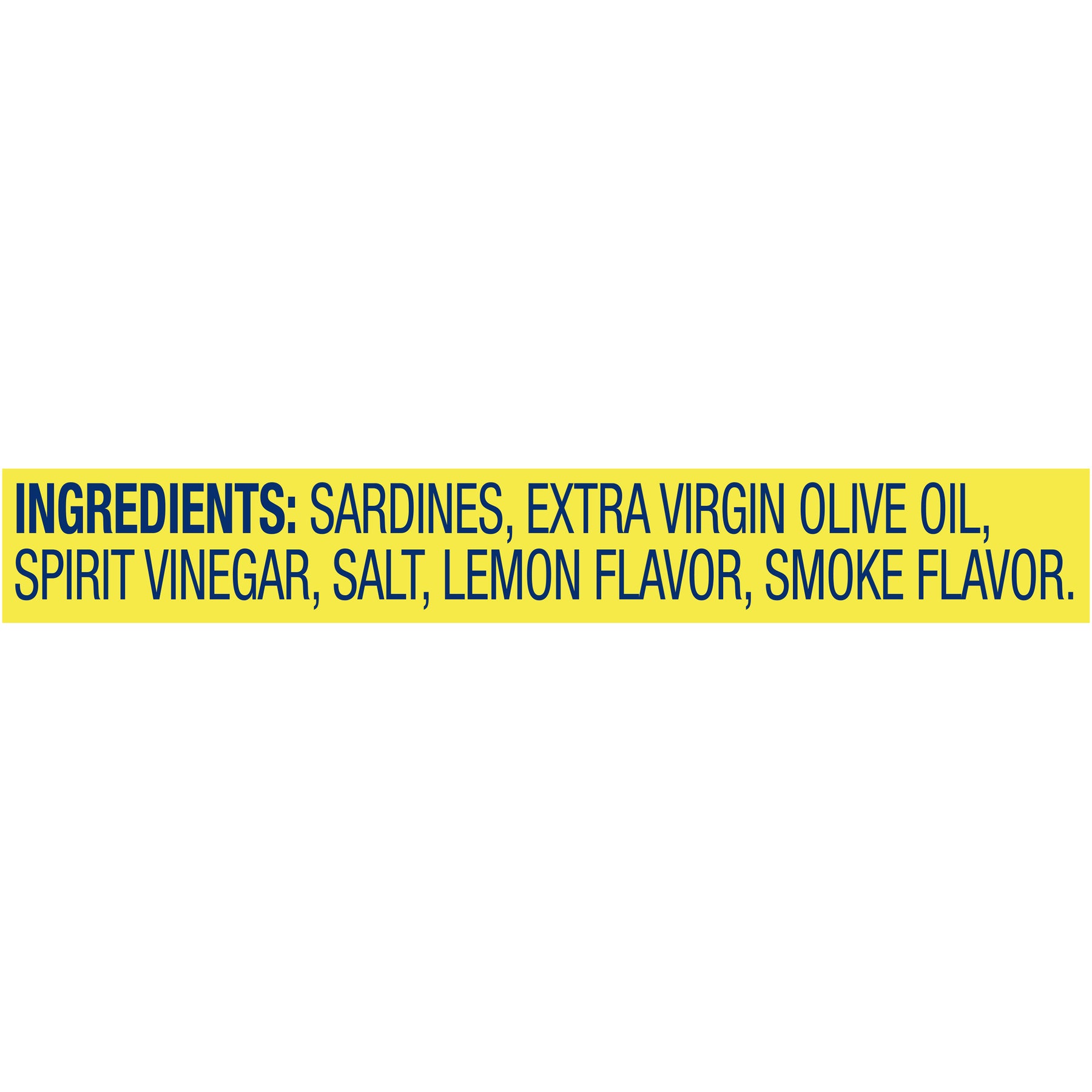 Ingredients | Sardines, Extra Virgin Olive Oil, Spirit Vinegar, Salt, Lemon Flavor, Smoke Flavor |