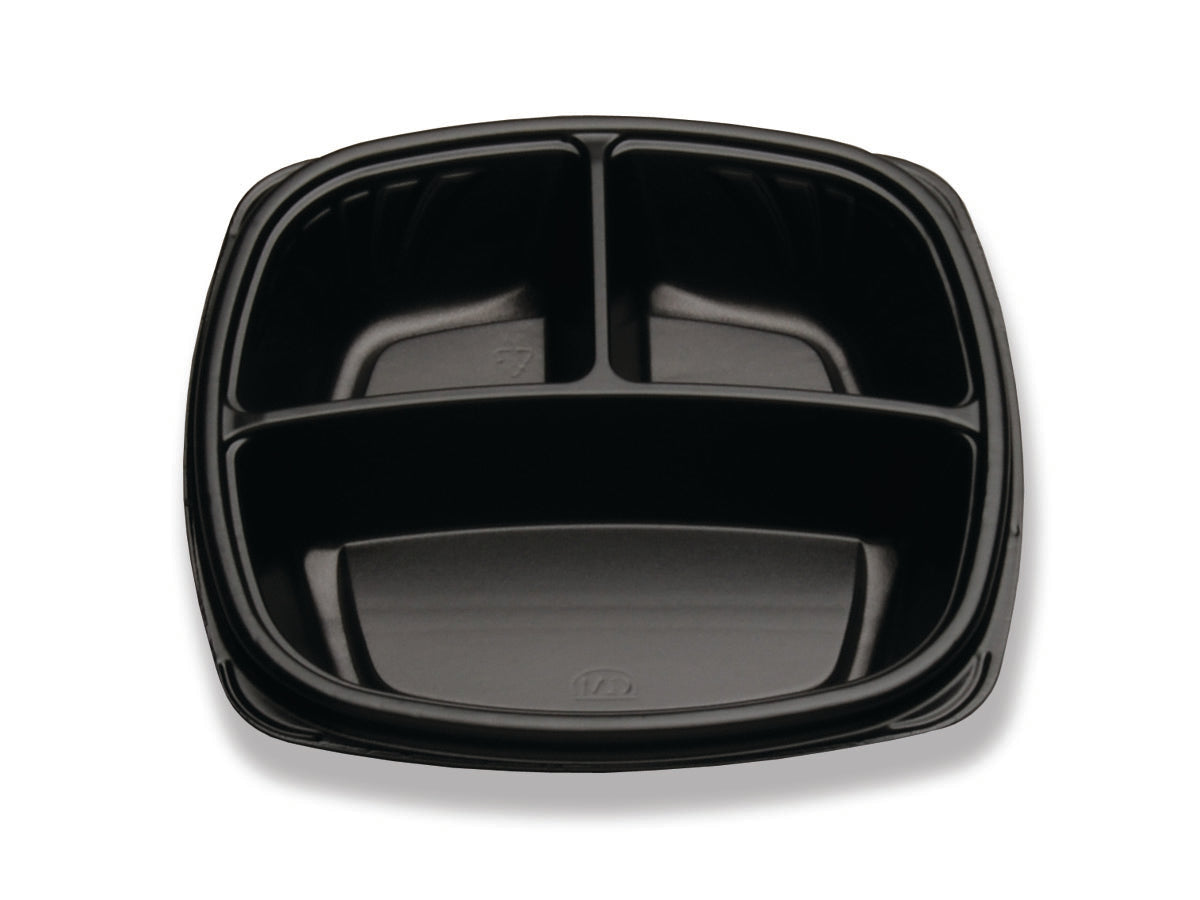 D & W Fine Pack Forum 9" 3 Compartment-Black-Deep-Square Base Container-75 Each-75/Box-4/Case