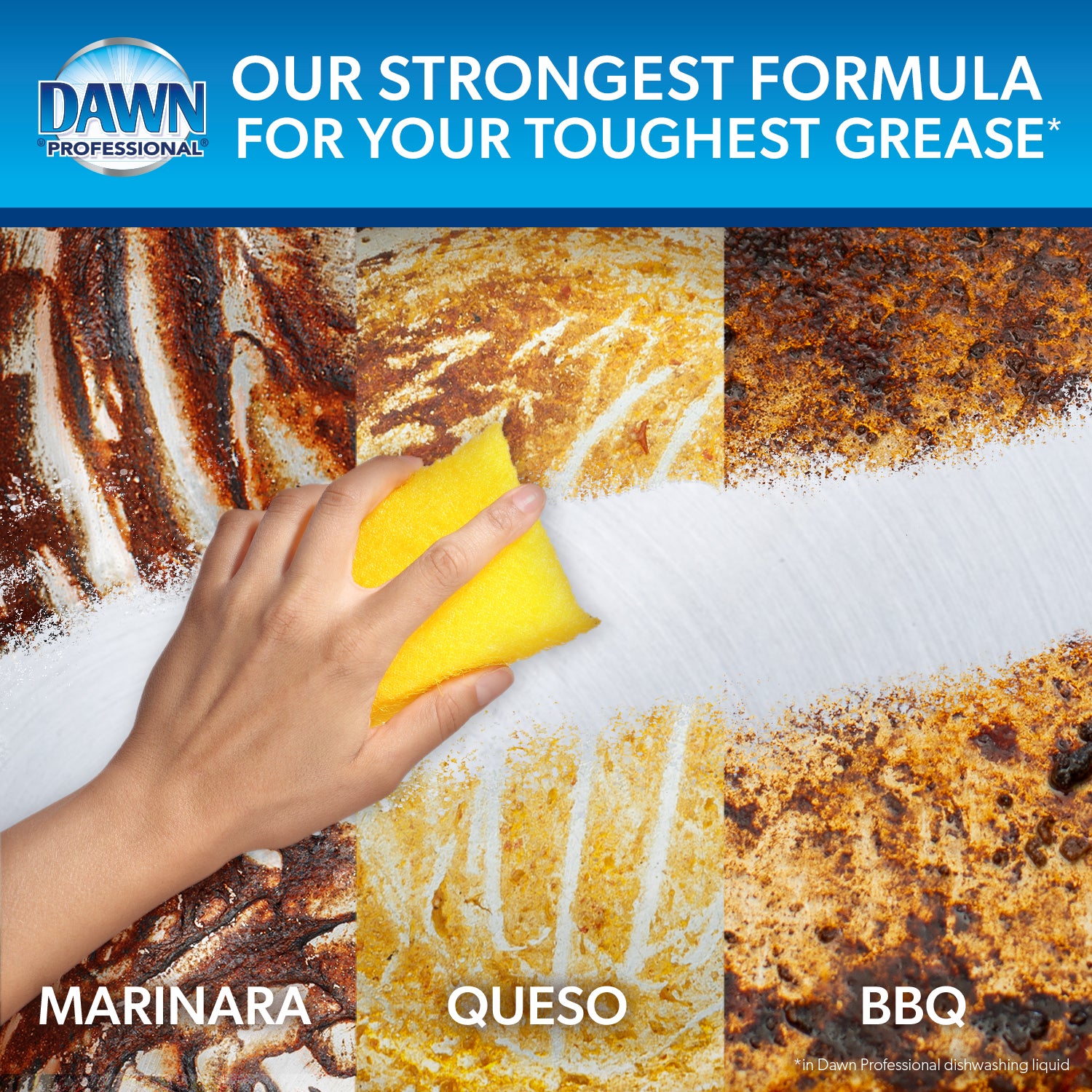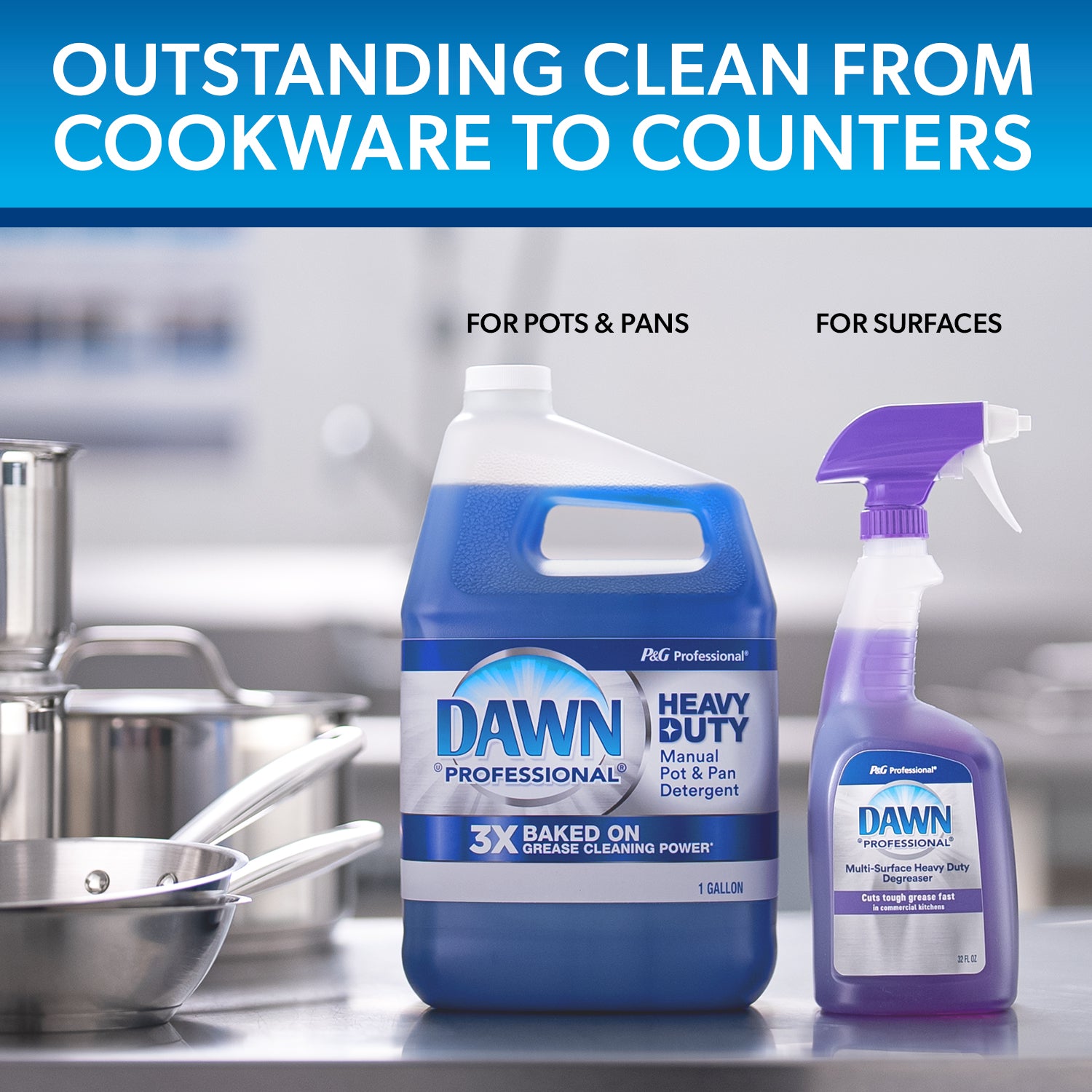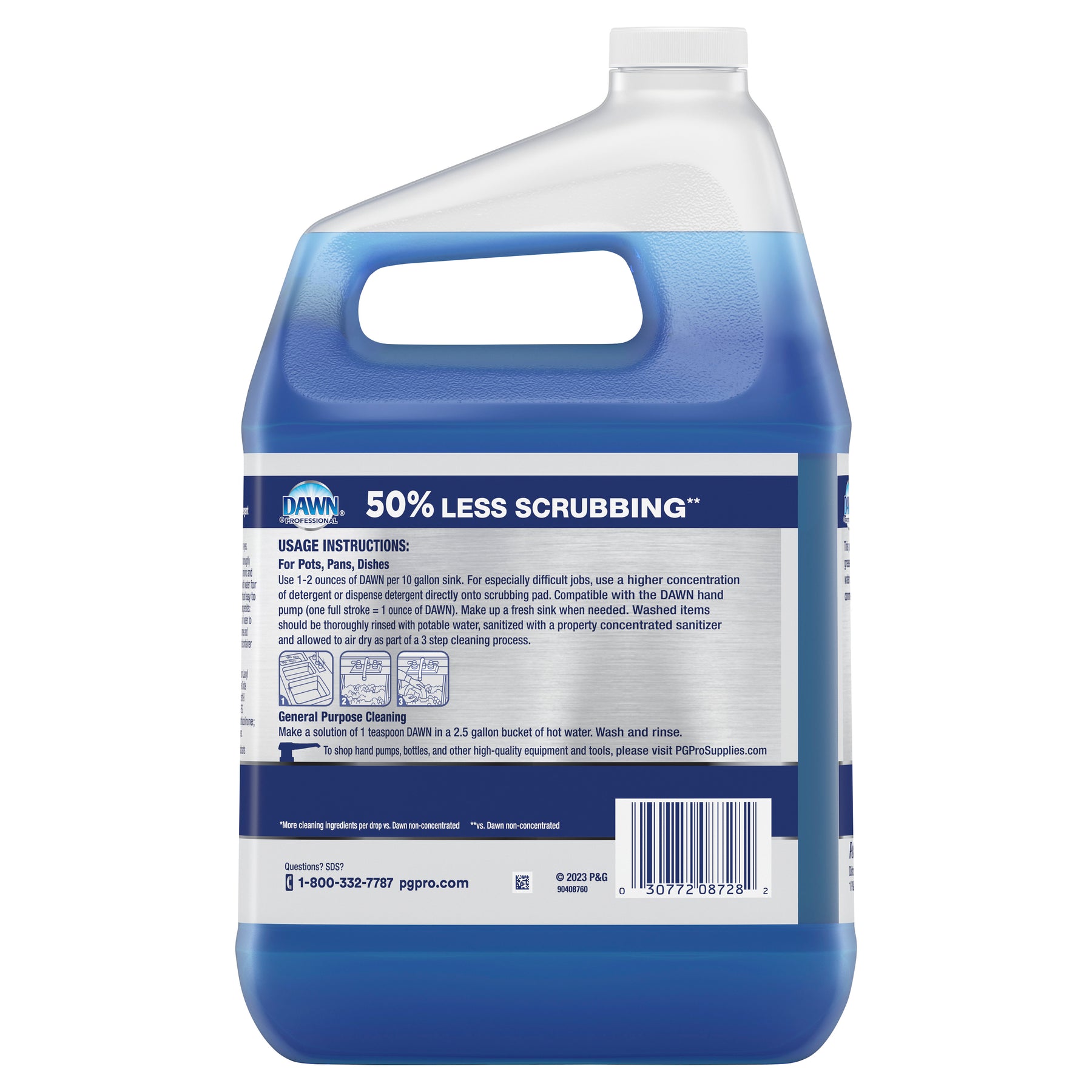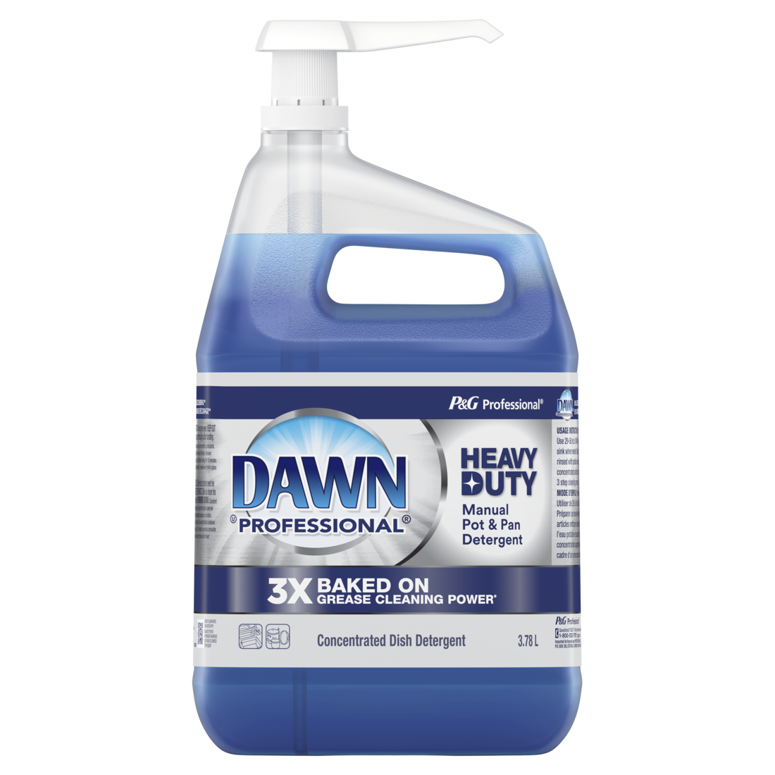 Experience 3X Baked on Grease Cleaning Power* with Dawn Professional’s New Heavy Duty Manual Pot and Pan Dish Detergent, the best and strongest Dawn Professional formula**. Made for your toughest jobs, this Heavy Duty Dish Soap saves you time and effort with 50% less scrubbing from active ingredients that do more of the work for you***. This means less time presoaking, less time scrubbing, and more time back to you. Cut through the toughest jobs like baked/caked on grease, dried eggs, tomato sauce, butter, potatoes, beans and more throughout your kitchen. Dawn Professional Heavy Duty Dish Soap is made for the hardest to clean items like your pots and pans, silverware, serving utensils, baking trays, containers, serving trays, plates, plastic items and more. Baked on, Caked on, Stuck on – Dawn Professional Heavy Duty Manual Pot and Pan Dish Detergent will cut through it all. Dawn Professional Heavy Duty is Dawn Professional's best dishwashing liquid formula with our highest level of proprietary grease-cutting surfactants to take on the toughest pots and pans in your sink.To use in 3 compartment sink:1) Dose into sink at 1-2 ounces per 10 gallon of water 2) Let suds do the heavy lifting 3) Easily scrub and rinse away soil*More cleaning ingredients per drop vs. Dawn Non-Concentrated**in Dawn Professional dishwashing liquid***vs dawn non-concentrated