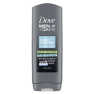 - MADE WITH CARE: Dove Men+Care hydrating Clean Comfort body wash is certified cruelty-free by PETA and made in 100% recycled plastic bottles.