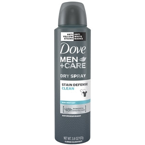 Dove Men’s new revolutionary formula offers powerful 72h odor and wetness protection, long lasting scent, and 1/4 moisturizing cream. Dove Men+Care Stain Defense Clean Antiperspirant’s optimized formula helps reduce the appearance of white marks and yellow stains on clothes. Enjoy the subtle, long-lasting scent of Orange Blossom, Lavender, and Oak Moss in our Stain Defense Clean dry spray antiperspirant deodorant. Dove Men's antiperspirant is formulated with 1/4 Moisturizing Cream to help retain skin moisture and help protect against irritation for more comfortable underarms. Dove Men Dry Spray’s unique formula goes onto skin instantly dry, for a comfortable feel. Shake well before each use. Hold the dry spray can 6 inches from the underarm. Spray on underarm to feel the difference. Looking for more Dove Men+Care skin care products? Try the full range of Dove Men+Care products, including antiperspirant deodorants, dry spray antiperspirant deodorants, body washes, face and body bars, and hair and skin care products. Dove Men+Care Clean Comfort Antiperspirant Deodorant Dry Spray can is made with infinitely recyclable aluminum. All Dove products, including this antiperspirant deodorant dry spray, are PETA-certified cruelty-free. Globally, Dove does not test on animals.
