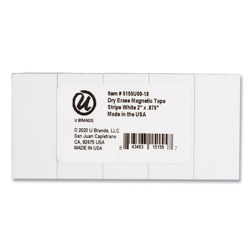 Dry Erase Magnetic Tape Strips, 2" X 0.88", White, 25/pack