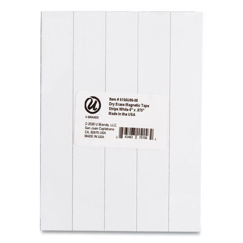 Dry Erase Magnetic Tape Strips, 6" X 0.88", White, 25/pack
