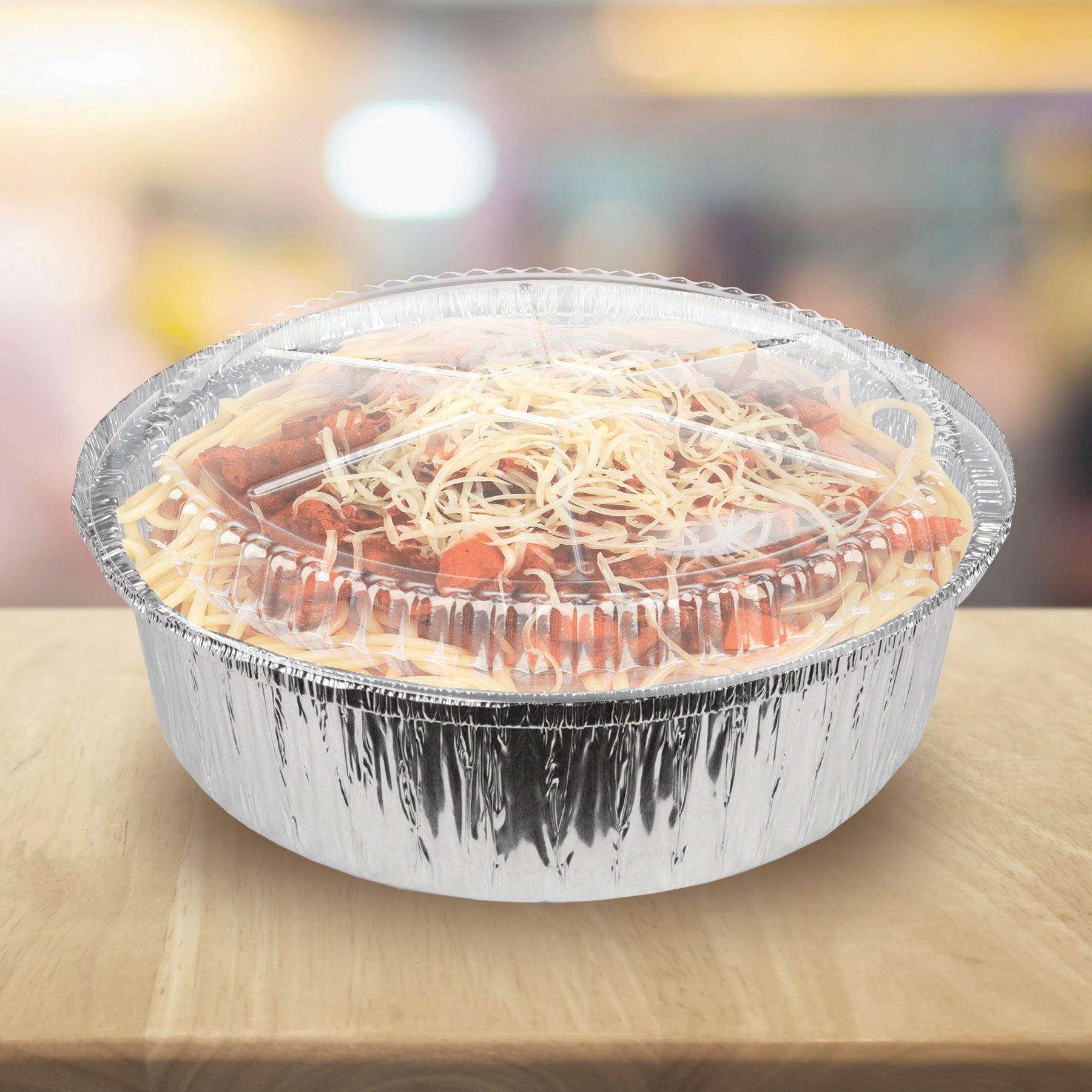 Clear plastic dome lids for aluminum containers with hemmed edges