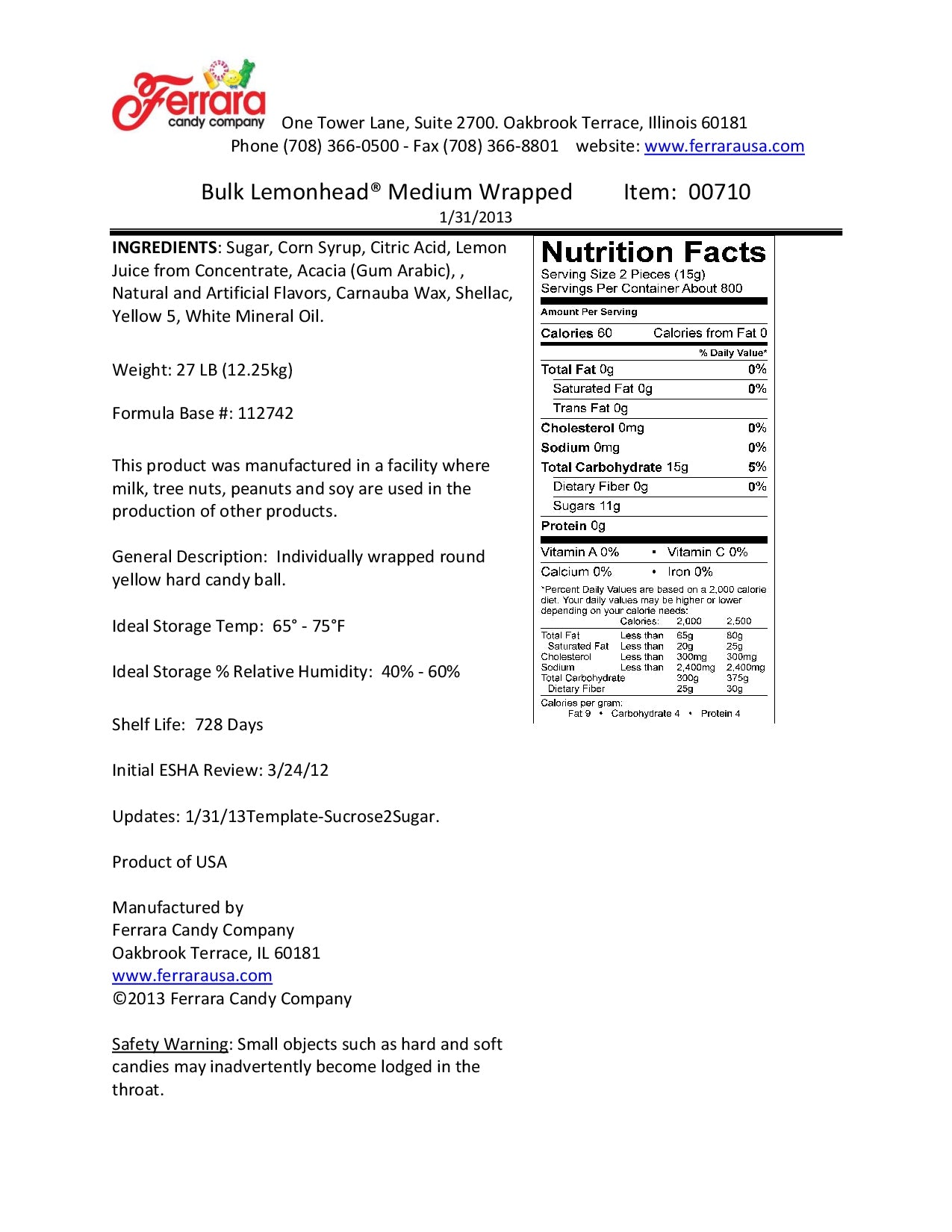 | Manufacturer | Ferrara Candy Company |