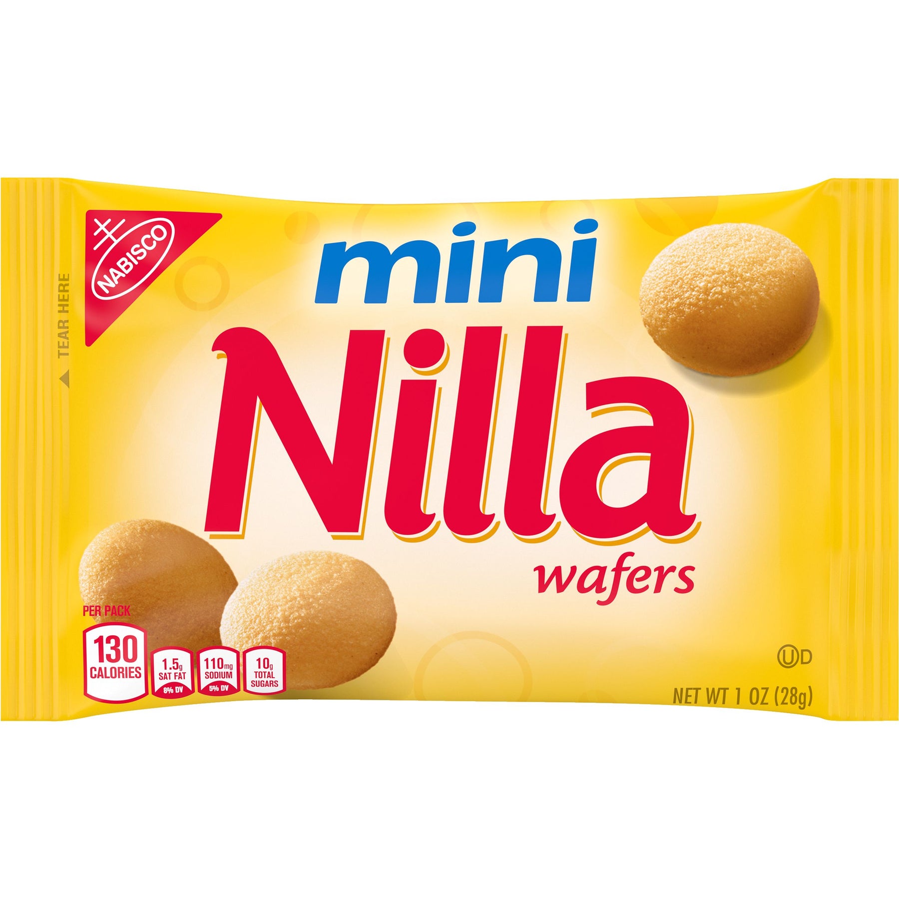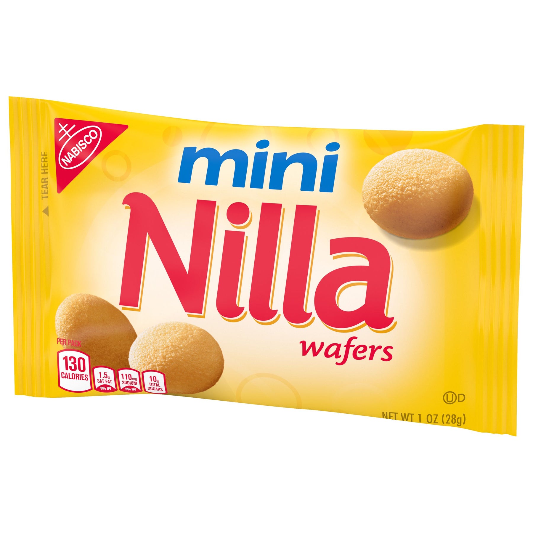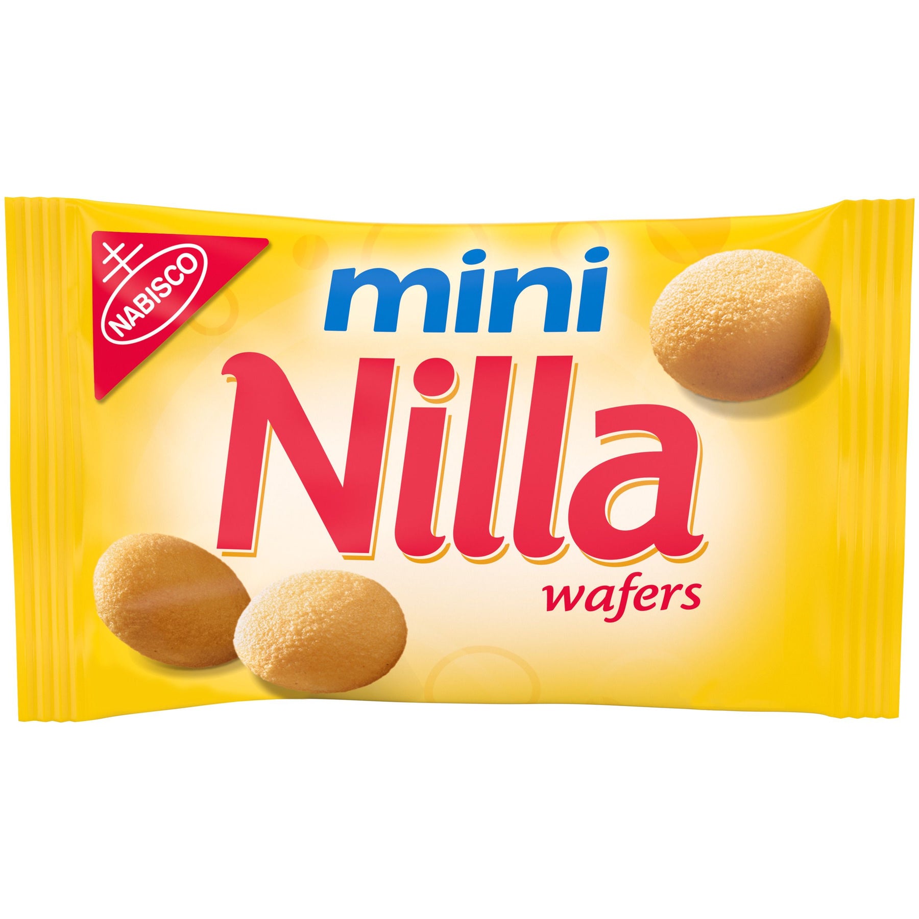 With NILLA Wafers Mini Wafer Cookies, the dessert possibilities are endless. These mini cookies are sweet, crispy, and artificially flavored vanilla wafers like their regular sized counterparts, but their smaller size makes them perfect for grabbing and snacking. Mini NILLA Wafers are perfect for topping banana pudding, cakes and cupcakes or creating mini ice cream sandwiches or vanilla pudding cups. These vanilla flavored cookies make delicious, sweet snacks, perfect for enjoying on the go or in the comfort of your own home.