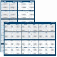 Reversible/erasable 2 Year Wall Calendar, 24 X 37, Light Blue/blue/white Sheets, 24-month (jan To Dec): 2023 To 2024