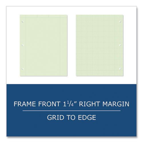 Roaring Spring Engineer Pad (1.25" Margin) Quad Rule (5 Sq/in 1 Sq/in) 200 Lt Green 8.5x11 Sheets/pad 12/ct