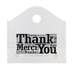 Perfect for transporting warm or cold takeout food containers Made from high density polyethylene (HDPE) Bag features die cut handles Range of bag sizes accommodates from small single takeout boxes up to 2 full size steam pans for catering Recyclable Material Thickness: 1 mil Size: 19" X 18" X 9 1/2"