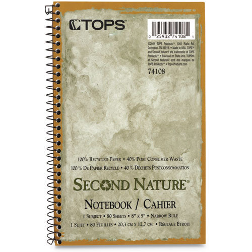 Second Nature Single Subject Wirebound Notebooks, Medium/college Rule, Light Blue Cover, (80) 9.5 X 6 Sheets