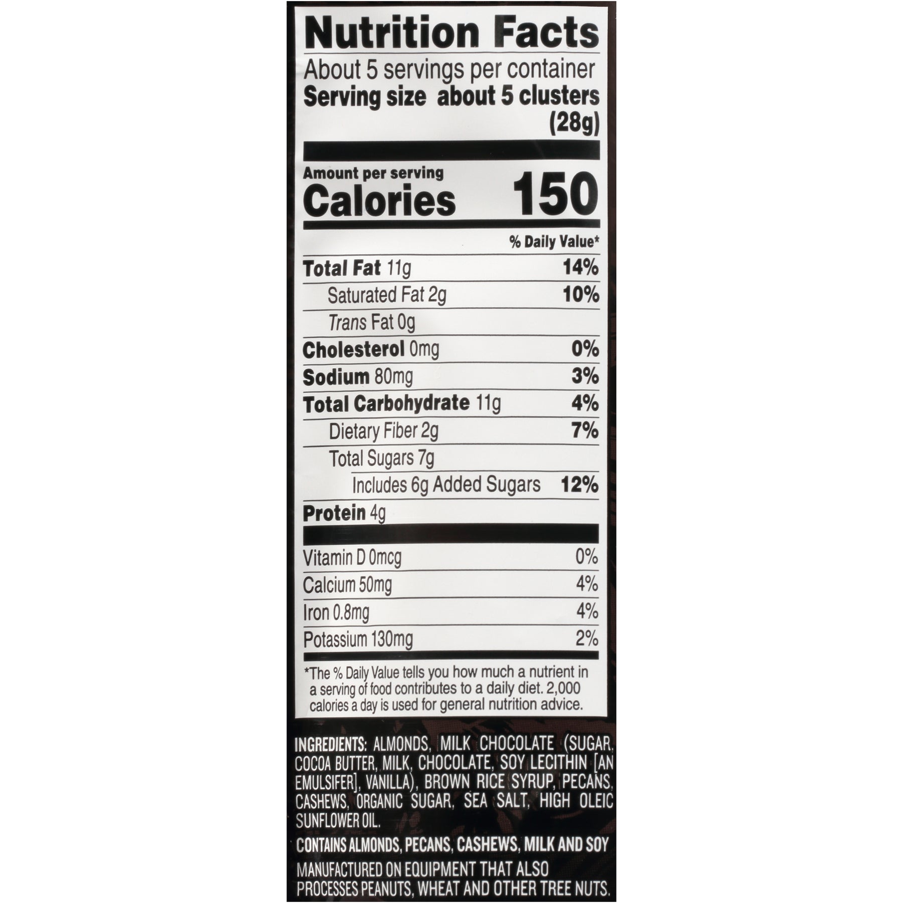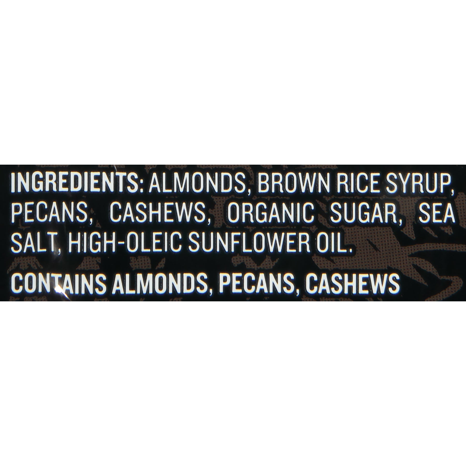| Ingredients | Almonds, Brown Rice Syrup, Pecans, Cashews, Organic Sugar, Sea Salt, High Oleic Sunflower Oil. |