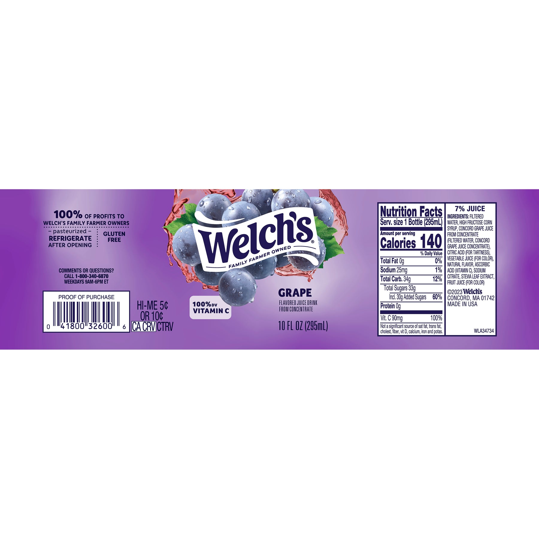 What makes Welch's so irresistibly delicious? Vibrant, unforgettable flavor that satisfies the whole family. Welch's Grape Juice Drink is a made with USA grown Concord Grapes. One delicious bottle of Welch's provides 100% Daily Value of Vitamin C. Visit our website to learn how we are Growing Tomorrow Together and investing in a better future. This is a pack of 24 - 10 fl. oz. bottle of juice, perfect for on the go.