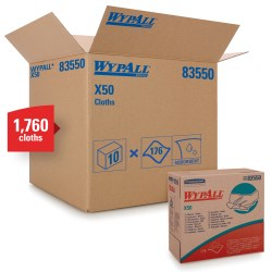 Kimberly-Clark Professional™ WypAll® X50 Cloth is an excellent choice. It’s the respected WypAll® Brand’s most economical extended use cloth, combining versatile performance with value design for light-duty tasks. They feature HydroKnit technology, which gives them strength and durability, so they are a great choice for the manufacturing, industrial, commercial, automotive and transportation industries. If you need durable wiping capabilities at a value price, WypAll® X50 Wipes are a smart choice. The Pop Up™ Box format is designed for convenient, one-at-a-time dispensing. The product has dimensions of 8.34"x12.5" and comes in a case of 10 boxes with 176 sheets per box.