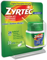 Zyrtec 10 Milligram 24 Hour Allergy-30 Count-4/Box-6/Case