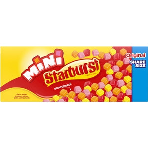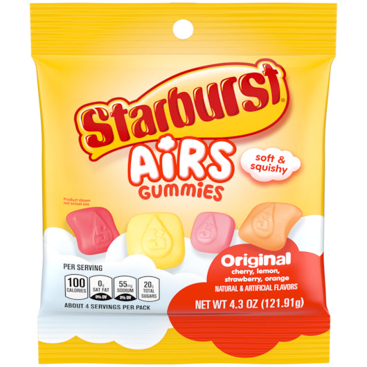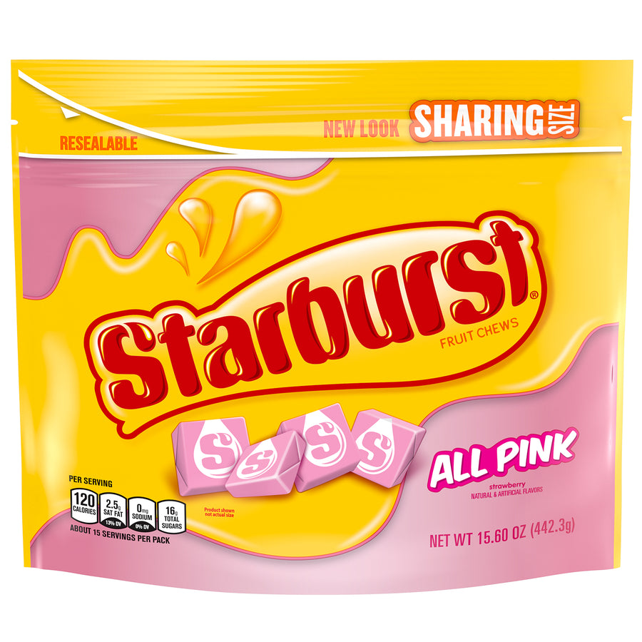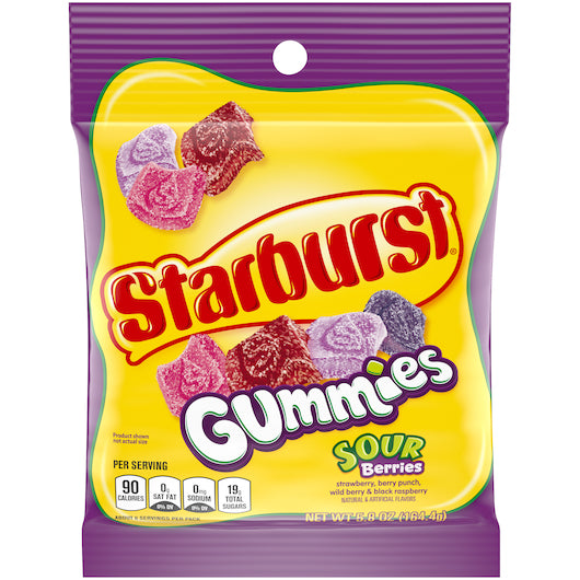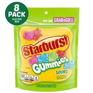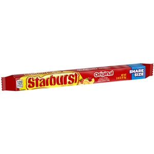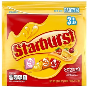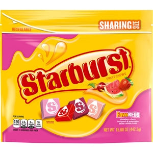 Find all your favorite Starburst flavors in our inventory. We carry many size choices for Starburst Original, which is still a crowd-pleaser, alongside more exotic selections like Starburst Sour Gummies and Tropical Fruit candy. For choosy snackers, go for Starburst Fave Reds, featuring only the most popular crimson-wrapped flavors like strawberry, watermelon and cherry. You'll also find value packs that feature a mix of Skittles, Lifesaver and Starburst candy. Dispenser-ready, shareable and single-serve sizes are available for most flavors.